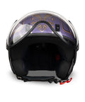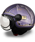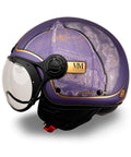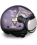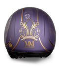 O capacete independente do Jet MM dedicado a Florence é renovado em uma esplêndida versão roxa com detalhes de MM e ouro e detalhes de ouro, embelezados com acabamentos exclusivos de ouro Chrometech e enriquecidos pelos detalhes característicos que distinguem os capacetes da linha MM.